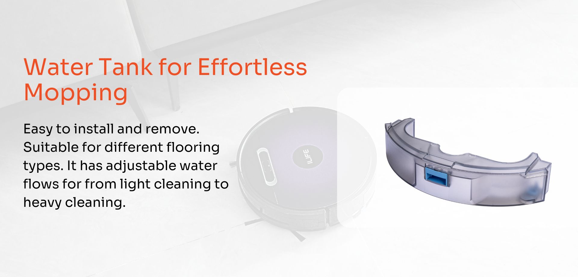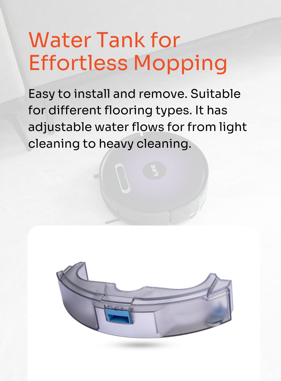 ILIFE A10s/L100 vacuum cleaner water tank is a component designed for mopping functions.