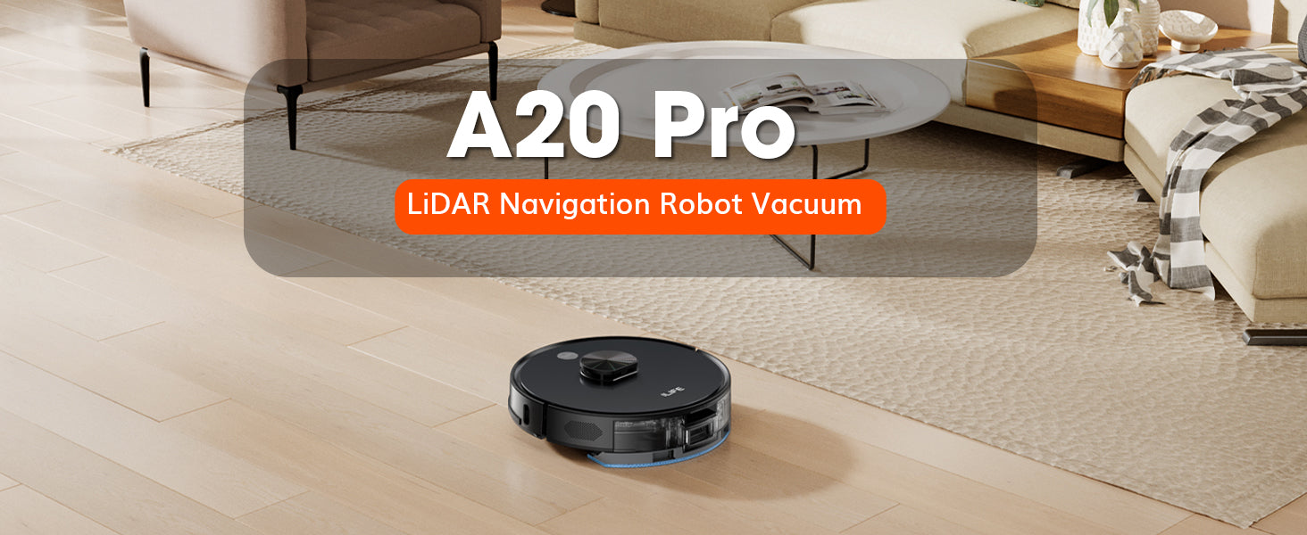 ILIFE A20 Pro is your ultimate cleaning companion, featuring advanced LiDAR navigation and powerful 6500Pa suction for effortless cleaning on any surface. Its vacuum and mop system tackles dirt and stains in one pass, while the 5200mAh battery ensures long-lasting performance. With smart app and voice control, cleaning becomes easy and hands-free, providing a spotless home every time.