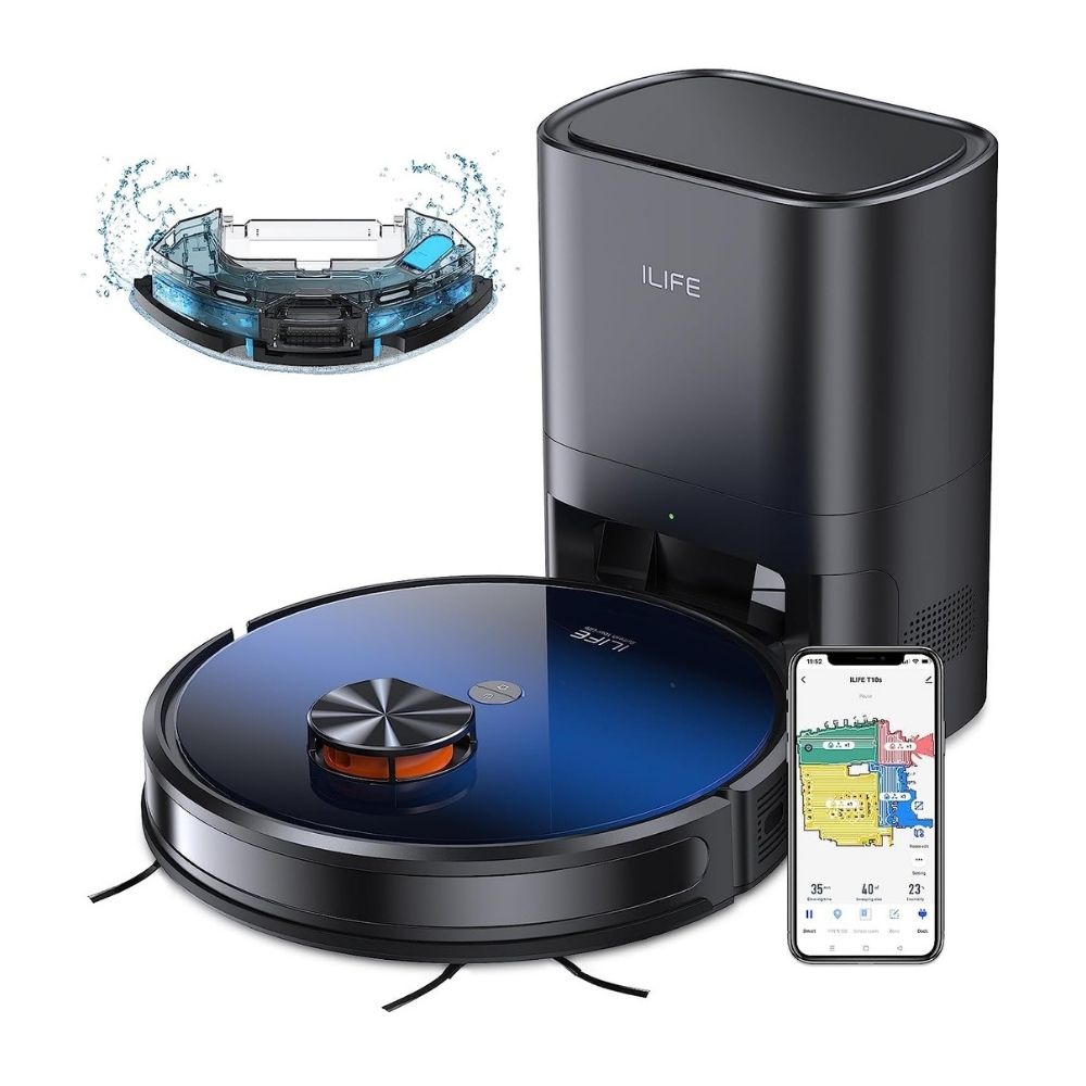 ILIFE T10s robot vacuum and mop has a big built-in battery capacity and can clean a room area of about 2000 sqft, at a time. With the auto recharge function, T10s will return to the base for charging and always be ready for the next cleaning.