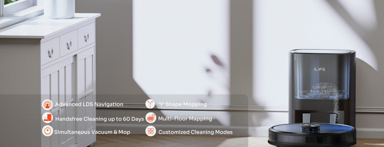 Equipped with advanced features, the ILIFE T10s is designed to simplify your cleaning tasks. Its innovative 2-in-1 design allows for simultaneous vacuuming and mopping, saving you both time and effort. The Smart LiDAR Navigation and Multifloor Mapping technology enable precise movement throughout your home, effectively avoiding obstacles and mapping multiple floors. The self-emptying station automatically collects debris into a 2.5L dust bag, minimizing the need for manual maintenance. Additionally, the 'Y' Path Cleaning system guarantees that every inch of your floor is thoroughly cleaned, providing efficient and comprehensive coverage.