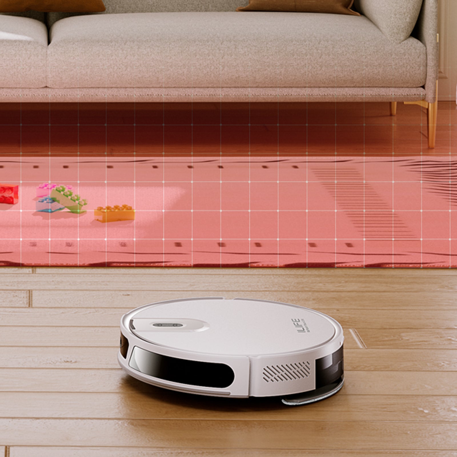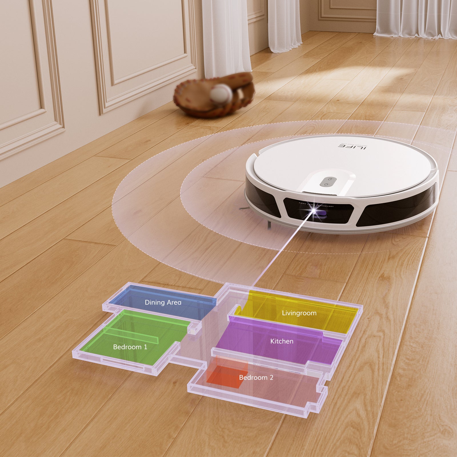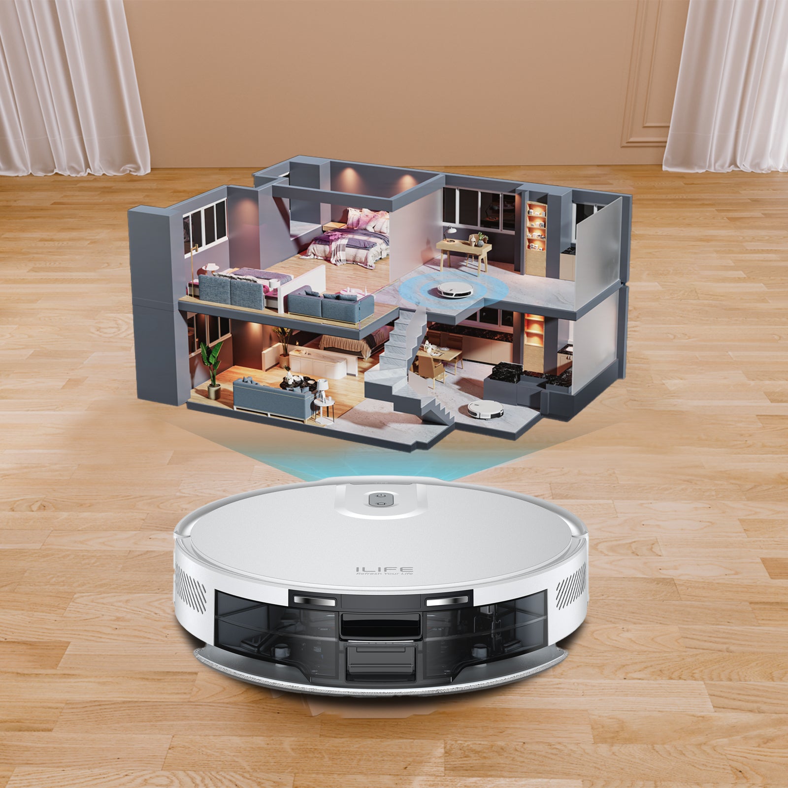 ILIFE V20 robotic vacuum is a versatile and efficient cleaning solution featuring advanced SoF Laser Navigation for precise mapping and thorough cleaning across multiple levels. With a powerful 5000 Pa suction, it easily cleans all types of flooring and includes an auto-carpet boost for deeper cleaning on carpets. Plus, its 2-in-1 vacuum and mop functionality allows it to clean and mop simultaneously, saving time and effort. Additionally, this V20 is controlled via a Smart App, voice assistants, or a remote, offering customisable cleaning schedules, no-go zones, and spot cleaning. With a long-lasting battery, anti-collision sensors, and a slim design for hard-to-reach areas, the V20 provides a safe, efficient, and comprehensive cleaning experience for any home.