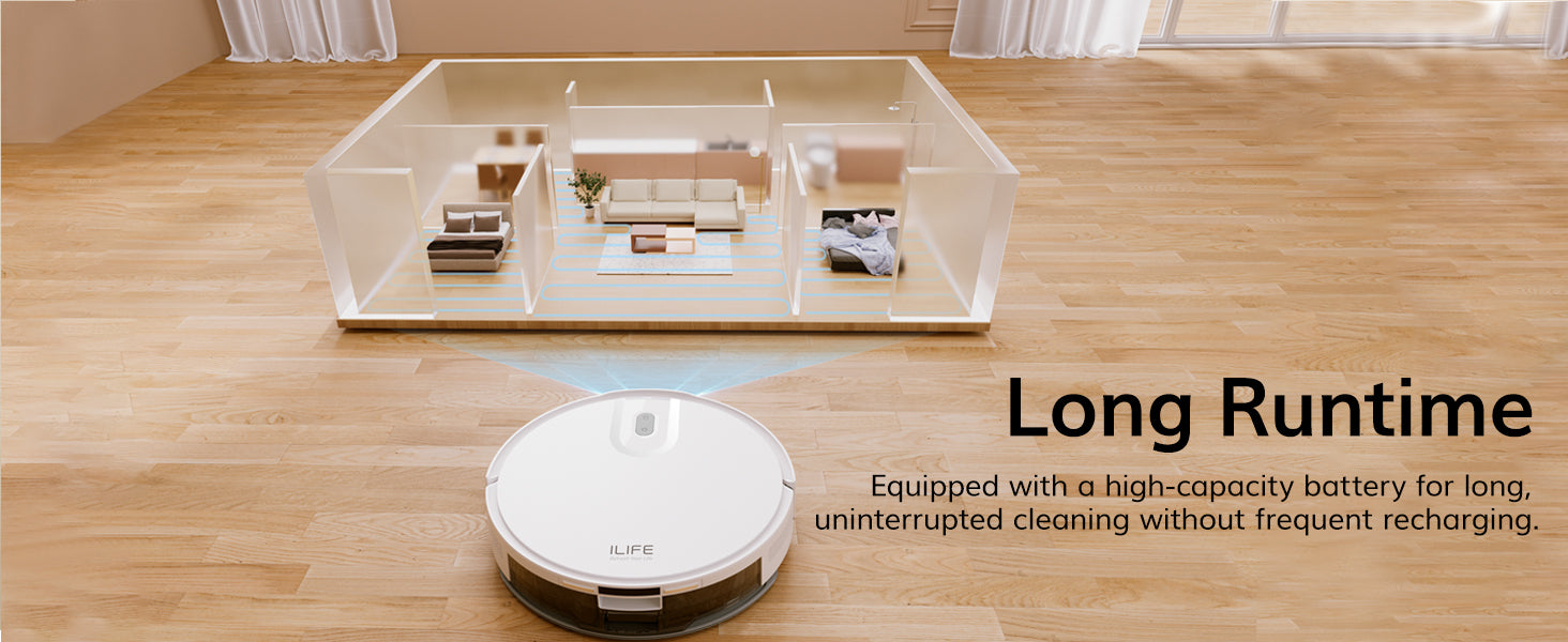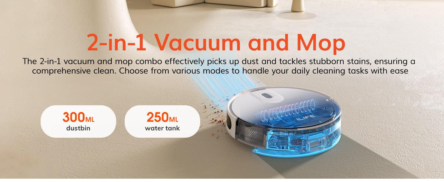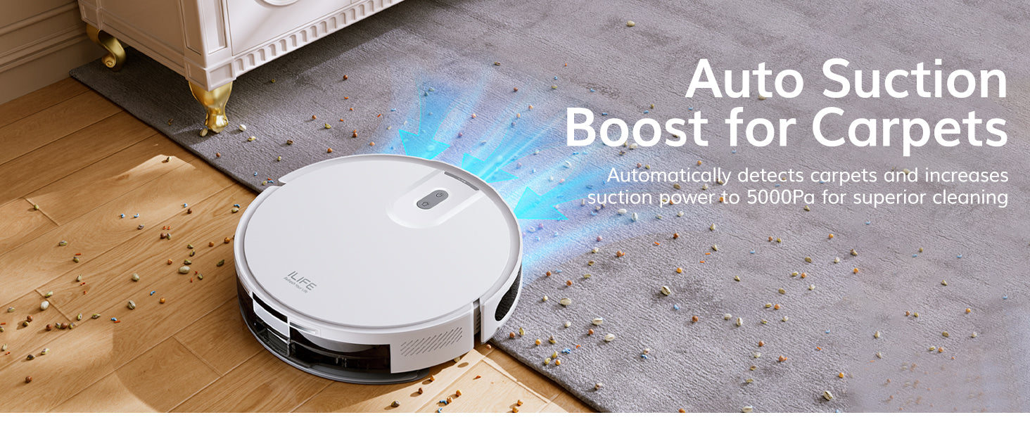 ILIFE V20 robotic vacuum is a versatile and efficient cleaning solution featuring advanced SoF Laser Navigation for precise mapping and thorough cleaning across multiple levels. With a powerful 5000 Pa suction, it easily cleans all types of flooring and includes an auto-carpet boost for deeper cleaning on carpets. Plus, its 2-in-1 vacuum and mop functionality allows it to clean and mop simultaneously, saving time and effort. Additionally, this V20 is controlled via a Smart App, voice assistants, or a remote, offering customisable cleaning schedules, no-go zones, and spot cleaning. With a long-lasting battery, anti-collision sensors, and a slim design for hard-to-reach areas, the V20 provides a safe, efficient, and comprehensive cleaning experience for any home.