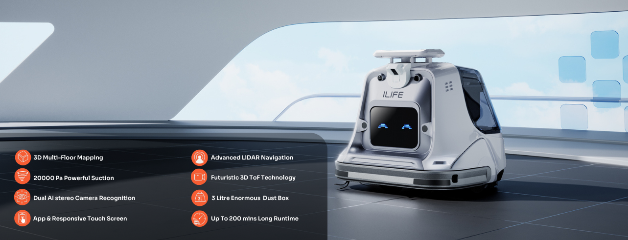 Introducing the ILIFE X1000, the world’s first commercial and home dual-purpose robot vacuum, expertly designed with advanced LiDAR technology to tackle the challenges of cleaning large spaces. Its robust construction and modern aesthetics make it an attractive addition to any environment, from homes to commercial settings. The intuitive 5.0-inch touchscreen interface ensures user-friendly operation, allowing you to manage cleaning tasks with ease.