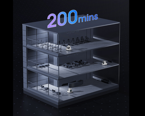 With 2 detachable batteries, each of which can be worked separately, X1000 can last up to 200mins,so you can clean 500-800m² at one time without interruption.